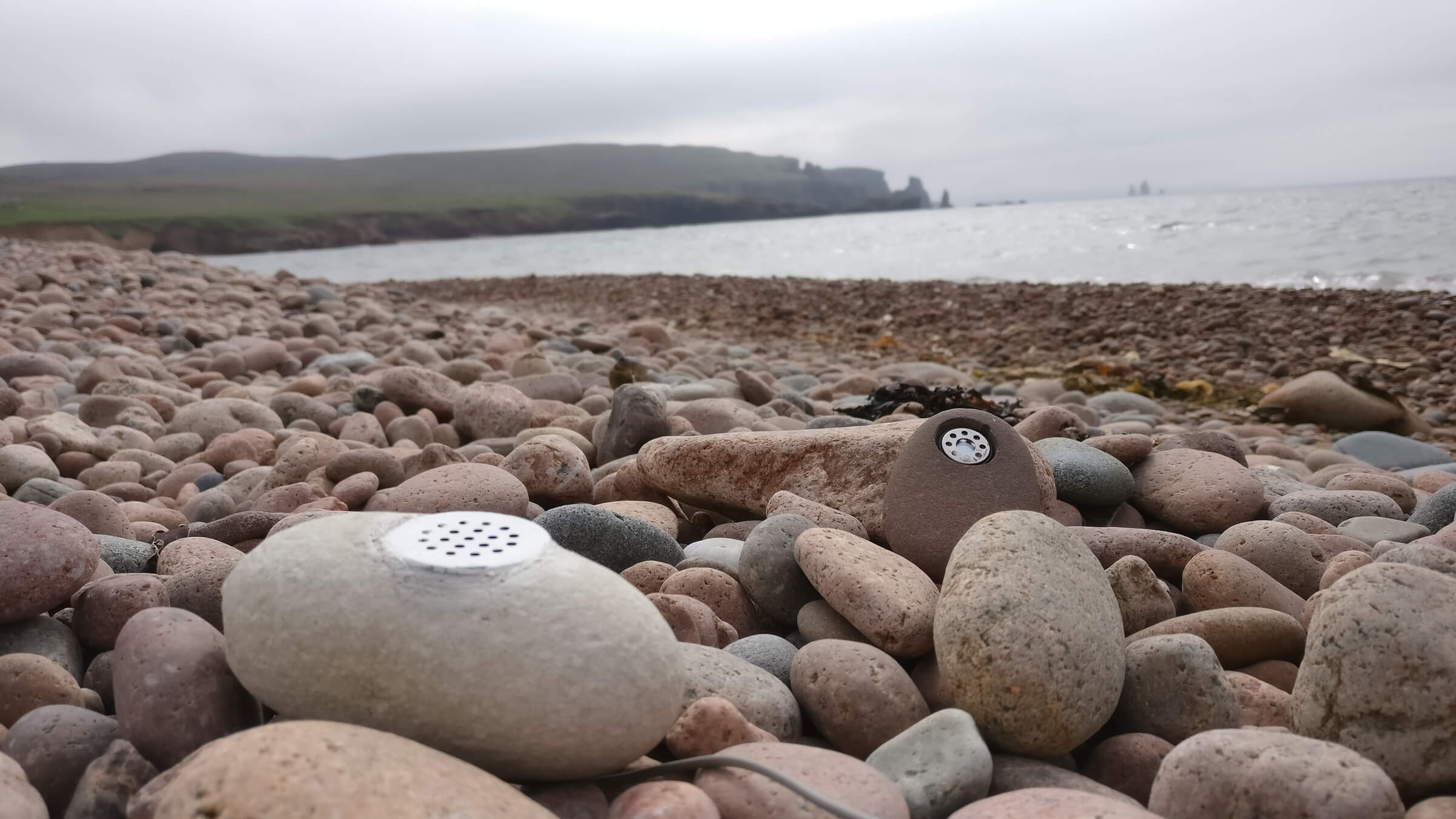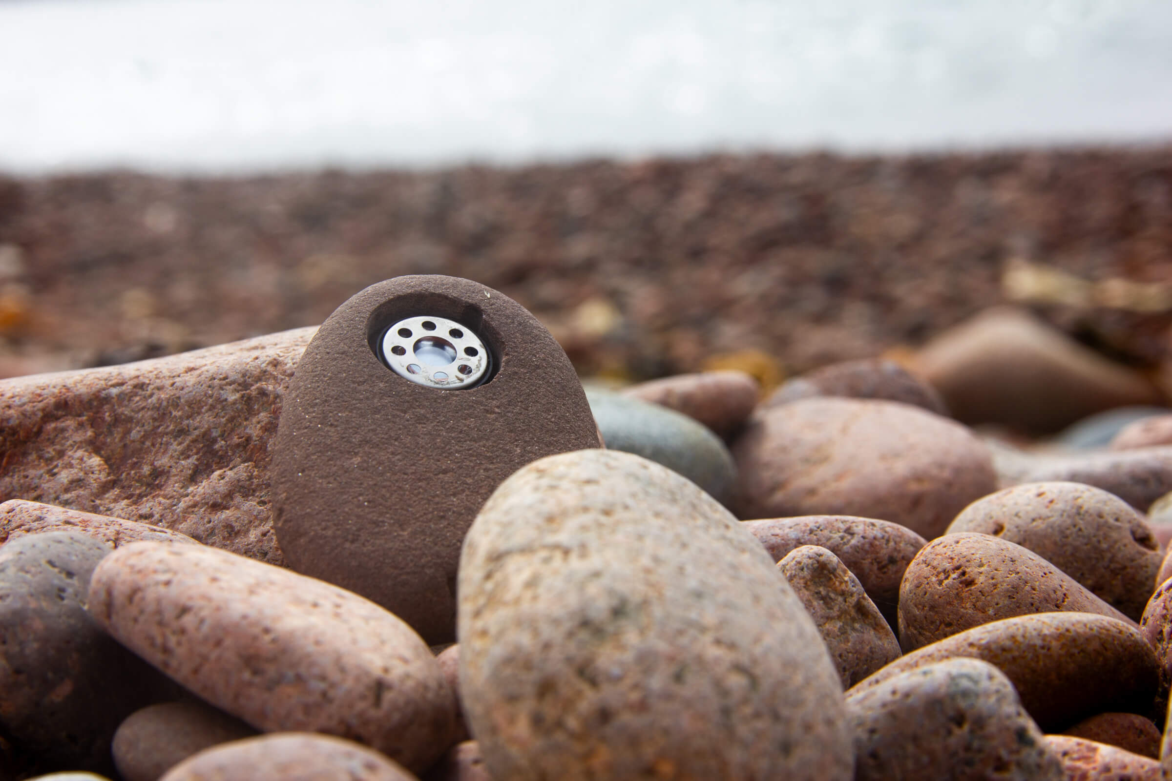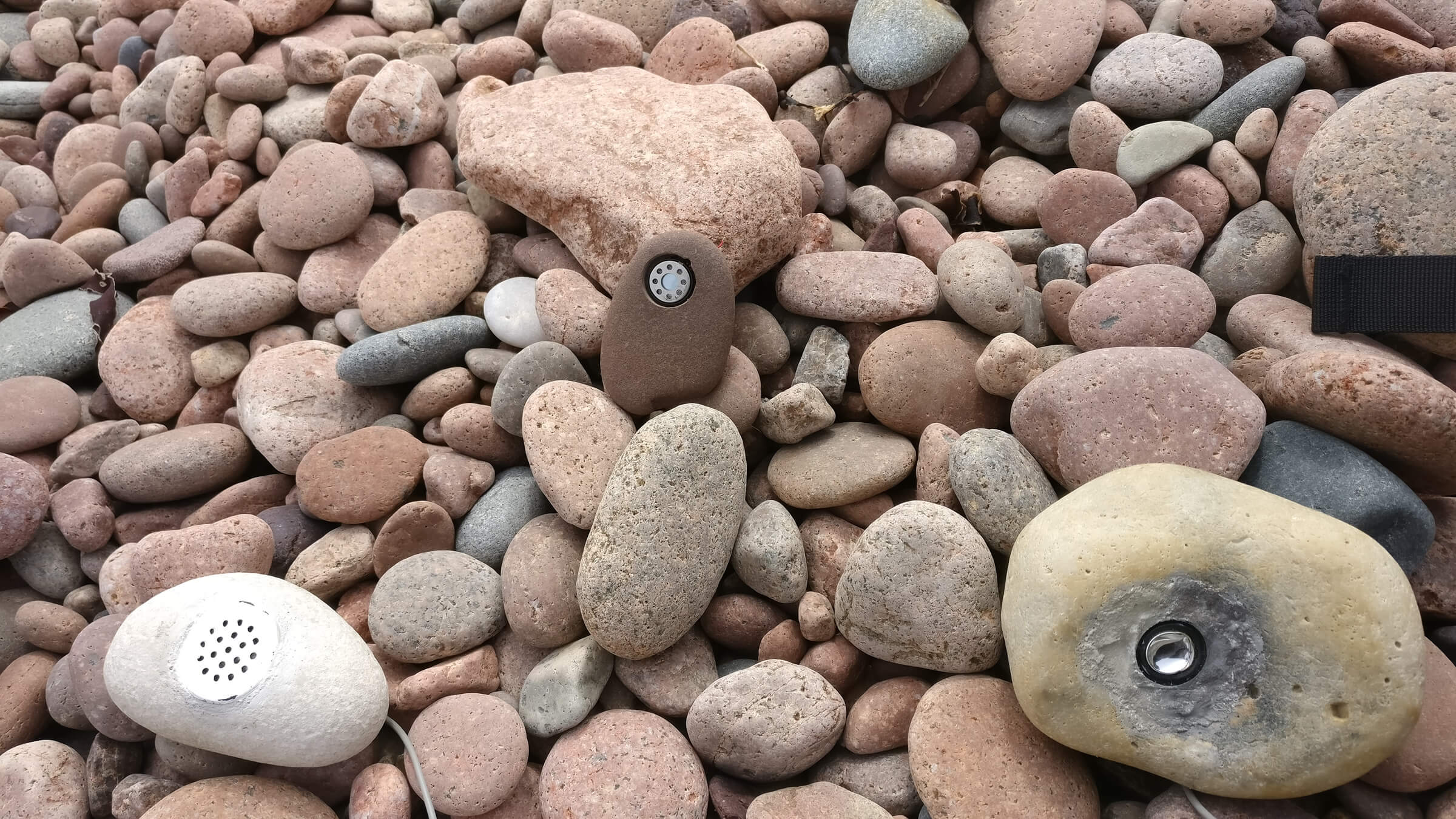 Sea Hear originated with recordings of people’s memories of the sea or seaside. These stories are then relayed and remixed through miniature speakers embedded in a small beach of pebbles. The recordings mingle and merge into a sea of sound where the voices are barely distinguishable, and only on holding and lifting a pebble to the ear can individual stories be heard.